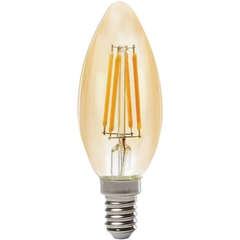 Livraison offerte à partir de 90 euros d’achats chez ce marchand. Ampoule LED ToLEDo Retro Flamme Ambrée 3,9W 400LM E14, boîte de 1. Marque Sylvania. Descriptif produit : Lampe à filament LED (de 2,5W à 7,5W) . Finition avec effet filament pour un rendu visuel semblable à une lampe traditionnelle. Flux lumineux : jusqu’à 1000lm – Efficacité lumineuse jusqu’à 134lm/W . Jusqu’à 90% d’économies d’énergie par rapport aux lampes à incandescence. IRC > 80 – Disponible en 1700K, 2200K, 2400K, 2700K et 4000K. Distribution lumineuse parfaitement homogène et extrêmement large – diffusion sur 300°. Allumage immédiat à 100% du flux. Existe en version dimmable . Longue durée de vie : 15.000 heures – 50.000 cycles d’allumage/extinction. Idéale pour le remplacement des lampes à incandescence jusqu’à 72W. Garantie 3 ans. Informations techniques : – Technologie : LED – Embout/Culot : E14 – Type : ToLEDo Retro Candle – Dimensions (diamètre x hauteur) (mm) : 35 x 100 – Finition de la lampe : Doré – Forme de la lampe : Flamme – Type de Luminaire (ouvert/fermé) : Ouvert – Flux Lumineux : 400 Lumen – Température de couleur : 2400 K – Couleur de lumière : Blanc flamme 824 – Puissance (Watt) : 3,9 – Tension (Volt) : 220-240V~ – Durée de vie : 15 000 heures – Usage prévu : Éclairage général