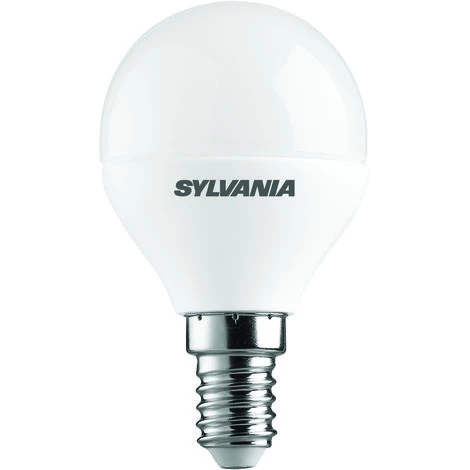 Livraison offerte à partir de 90 euros d’achats chez ce marchand. Ampoule LED ToLEDo Sphérique Dépolie 4W 250LM 2.7K E14, blister de 1. Marque Sylvania. Descriptif produit : Lampe LED dépolie multidirectionnelle (de 4W à 6W) – Culot E14 ou E27. Forme Flamme, Flamme Coup de vent et Sphérique . Flux lumineux : jusqu’à 470lm – Efficacité lumineuse : jusqu’à 78lm/W. Jusqu’à 90% d’économies d’énergie. IRC > 80 – Disponible en blanc confort (2700K). Retrofit à 100% avec une lampe à incandescence. Allumage immédiat à 100% du flux. Existe en version dimmable . Garantie 3 ans. Informations techniques : – Technologie : LED – Embout/Culot : E14 – Type : ToLEDo Sphérique Ball – Dimensions (diamètre x hauteur) (mm) : 45 x 78 – Finition de la lampe : Dépolie – Forme de la lampe : Sphérique – Flux Lumineux : 250 Lumen – Température de couleur : 2700 K – Couleur de lumière : Blanc chaud – Puissance (Watt) : 4 – Tension (Volt) : 220-240V~ – Durée de vie : 15 000 heures – Usage prévu : Éclairage général