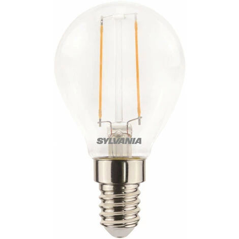 ToLEDo Retro Sphérique 2,5W 250lm 827 E14. Gamme de lampes à filament LED . Finition avec effet filament pour un rendu visuel semblable à une lampe traditionnelle. Jusqu’à 90% d’économies d’énergie par rapport aux lampes à incandescence. IRC > 80 – Disponible en 1700K, 2200K, 2400K, 2700K et 4000K. Distribution lumineuse parfaitement homogène et extrêmement large – diffusion sur 300°. Allumage immédiat à 100% du flux. Existe en version dimmable . Longue durée de vie : 15.000 heures – 50.000 cycles d’allumage/extinction. Idéale pour le remplacement des lampes à incandescence jusqu’à 100W. Garantie 3 ans. Ne convient pas aux luminaires fermés.
