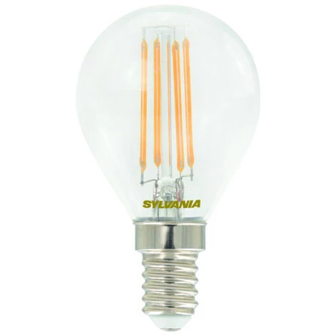 ToLEDo Retro Sphère 4,5W 470lm 827 E14 Pack de 4. Gamme de lampe à filament LED. Finition avec effet filament pour un rendu visuel semblable à une lampe traditionnelle. Jusqu’à 90% d’économies d’énergie par rapport aux lampes à incandescence. IRC > 80 – Disponible en 1700K, 2200K, 2400K, 2700K et 4000K. Distribution lumineuse parfaitement homogène et extrêmement large – diffusion sur 300°. Allumage immédiat à 100% du flux. Existe en version dimmable . Longue durée de vie : 15.000 heures – 50.000 cycles d’allumage/extinction. Idéale pour le remplacement des lampes à incandescence jusqu’à 100W. Garantie 3 ans. Ne convient pas aux luminaires fermés.