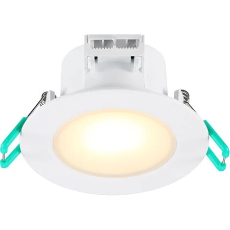 Projecteur encastrĂ© Ă LED intĂ©grĂ©, fixe, couleur RAL9016, 540 lm, 6,5 W, non dimmable, 3000 K, angle de faisceau de 100 °, corps en polycarbonate blanc, profondeur encastrĂ©e de 47 mm, IP65 par l’avant, IK03, encastrĂ© / bouclĂ© – des bornes de sortie pour u