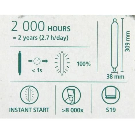 Ampoule linolite Eco halogéné classic 50 watts Straight . La technologie xénon est utilisée pour produire la lumière, pour cela il faut un flux lumineux étincelant. Elle dégage moins d’émissions de CO2 et génère moins de chaleur. L’ampoule fonctionne sans transformateur. Cette lampe dispose d’une durée de vie moyenne de 2 000 heures et permet d’économiser 20 % d’énergie par rapport aux lampes halogènes standard à double extrémités, tout en offrant le même flux lumineux. – Puissance 50 watts, 230 volts, forme linéaire finition transparente – Culot S19, classe énergétique D – Température de couleur 2800 K kelvins – Flux lumineux utile (nominal)775 lumens, couleur lumière 828 intérieure – Durée de vie 2000 heures – 1ampoule linolite (tube halogène)